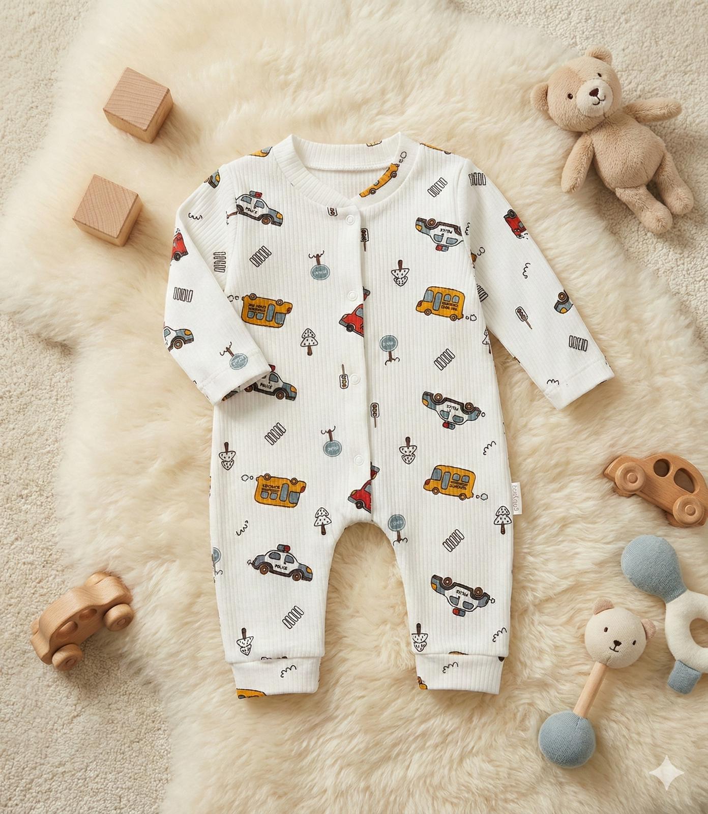 Minik bebeğinizin hassas cildi için özenle tasarlanan bu 3’lü tulum seti, konforu ve şıklığı bir araya getiriyor. Arabaların dansı, sevimli fil ailesi ve yaramaz ayıcık desenleriyle bebeğinizin gardırobuna neşe katmaya hazır!