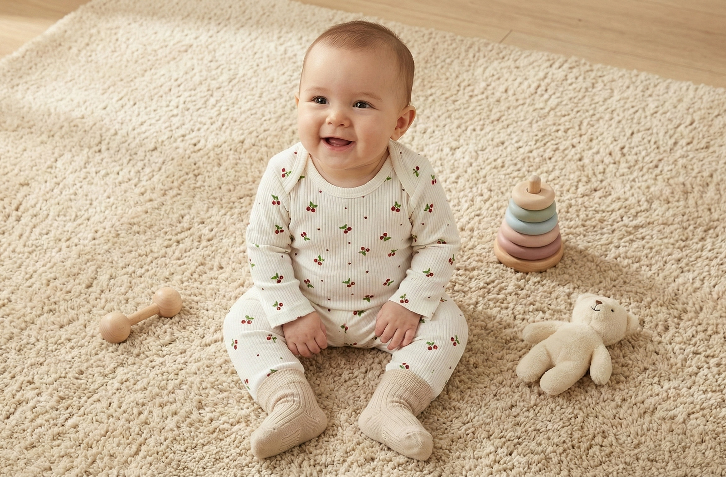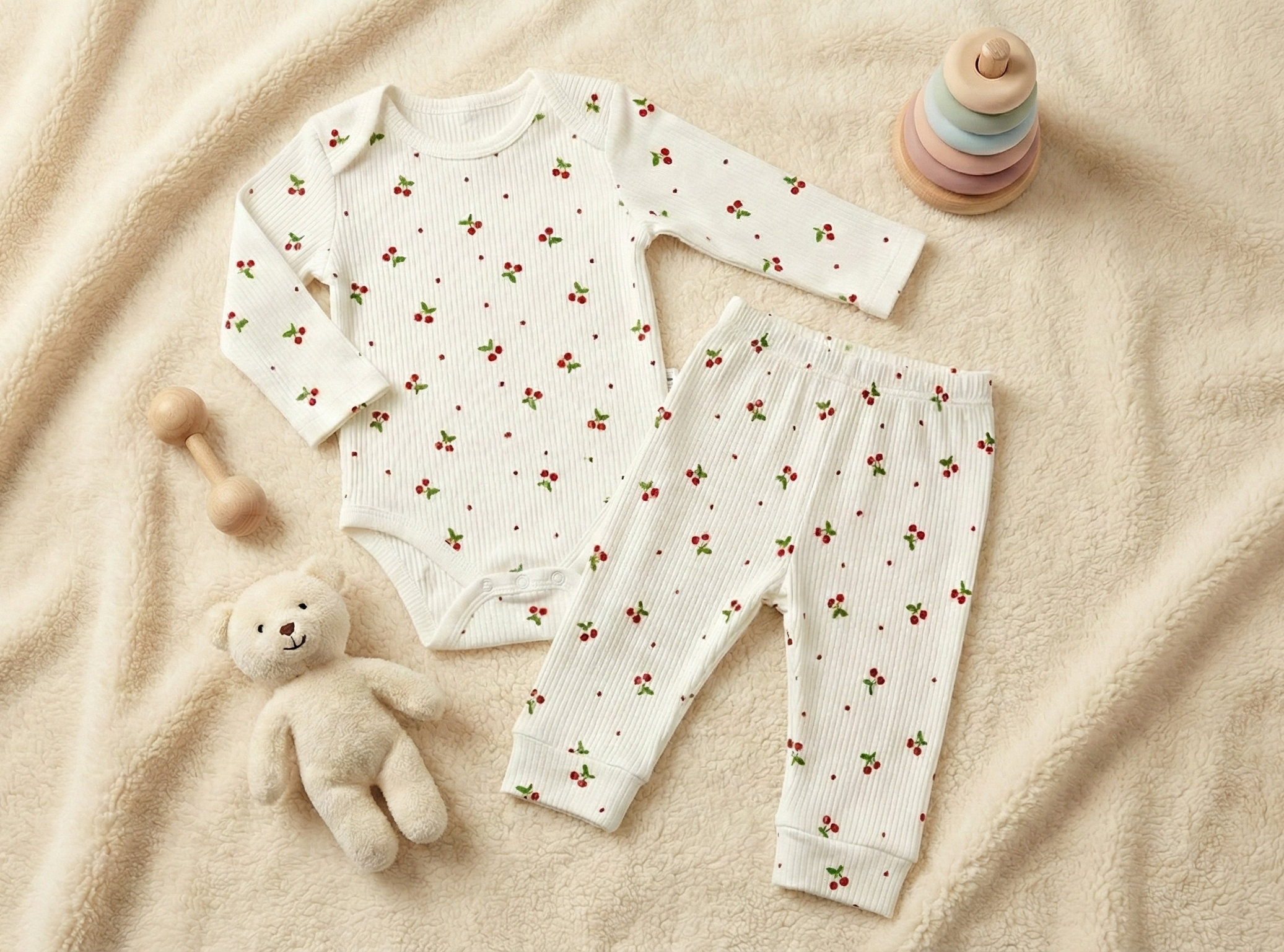 Minikler için tasarlanan kiraz temalı takım, bebeğinizin hem uykuda hem de oyunda konforlu hissetmesini sağlar. Yumuşacık fitilli dokusu ve esnek yapısı sayesinde bebeğinizin hareketlerini kısıtlamaz.