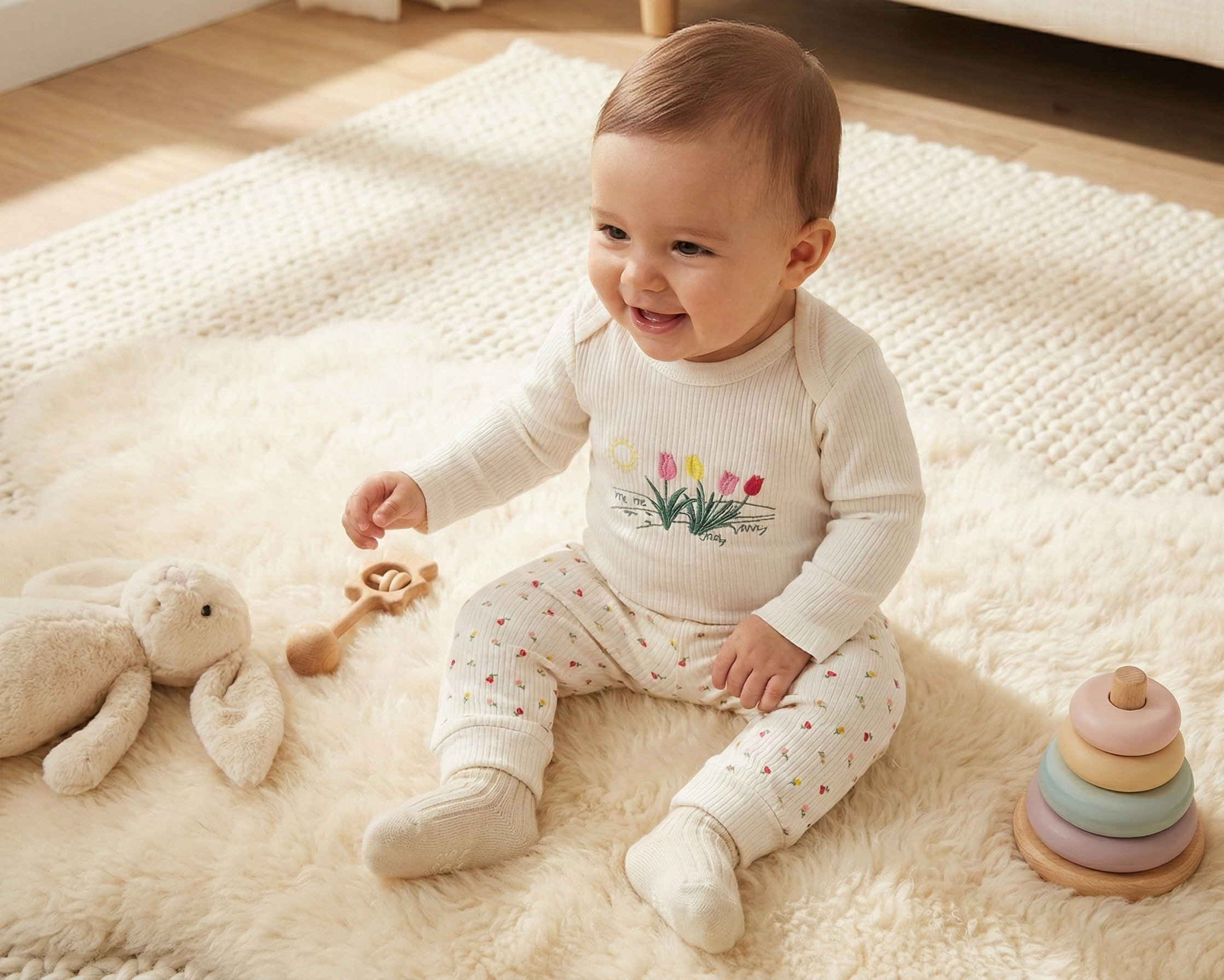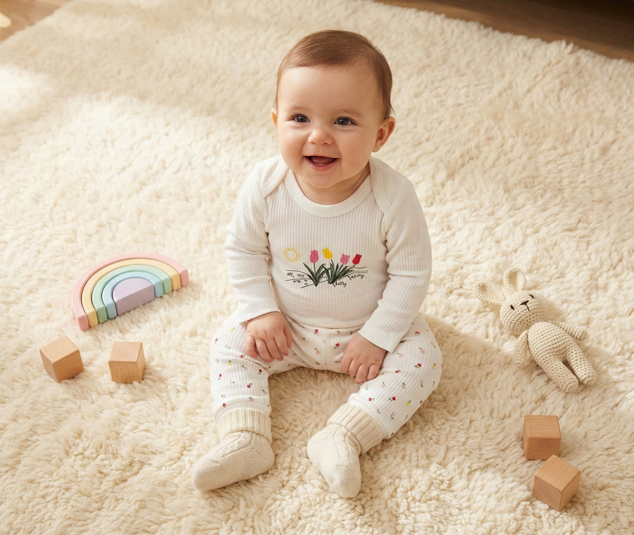 Minikler için tasarlanan lale temalı takım, bebeğinizin hem uykuda hem de oyunda konforlu hissetmesini sağlar. Yumuşacık fitilli dokusu ve esnek yapısı sayesinde bebeğinizin hareketlerini kısıtlamaz.