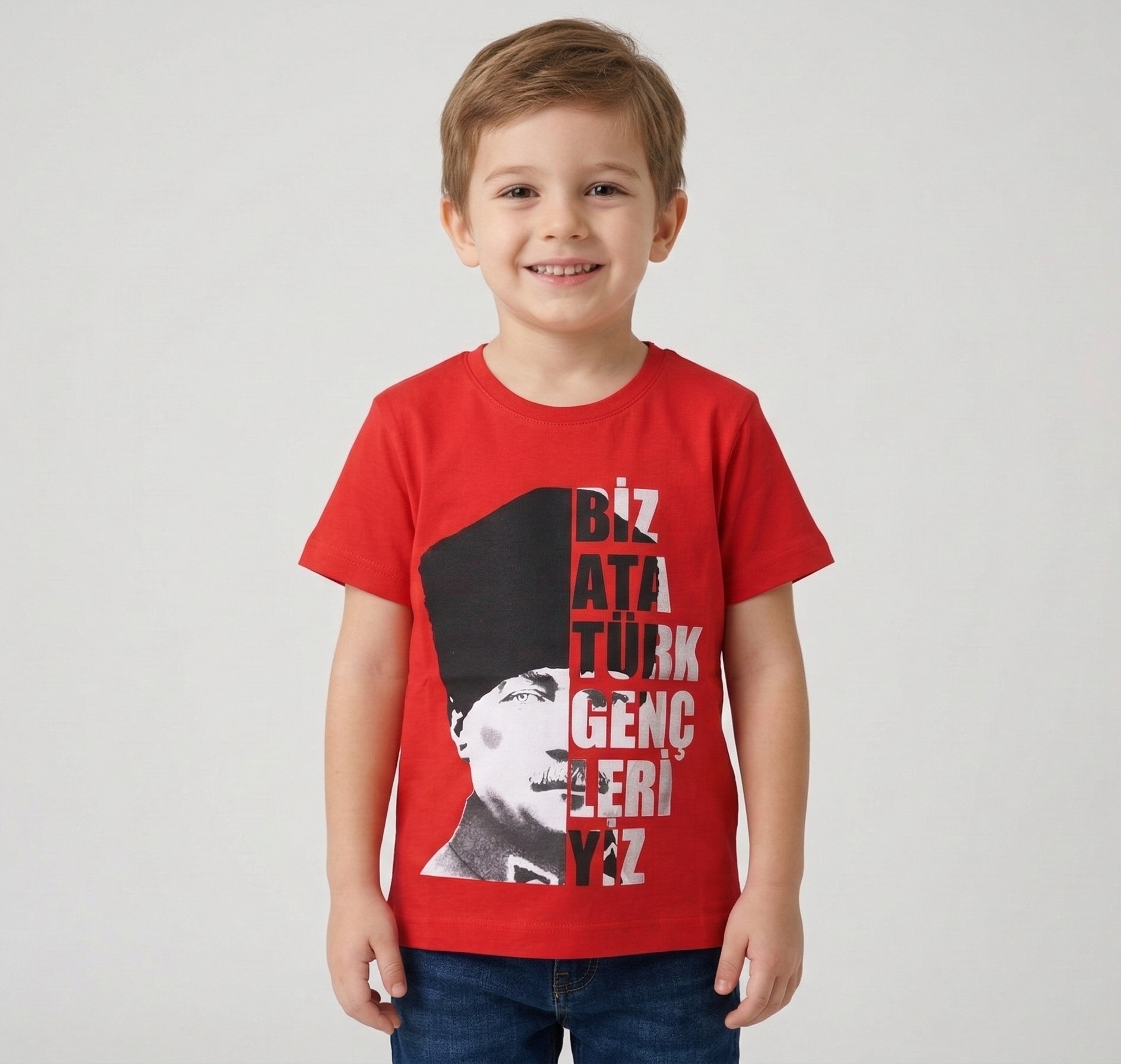 Ürün detayları Ürün tanımı: 23 Nisan özel Atatürk baskılı kısa kollu pamuklu unisex çocuk tişört/t-Shirt mevsimi: Yazlık.