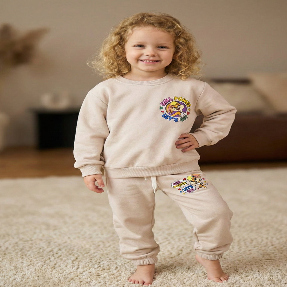 Fonksiyonel Detaylar: Alt eşofman, çocukların kullanım kolaylığı için yandan cepli olarak tasarlanmıştır. Beli lastikli ve kordonludur, tam kalıp sağlar.
