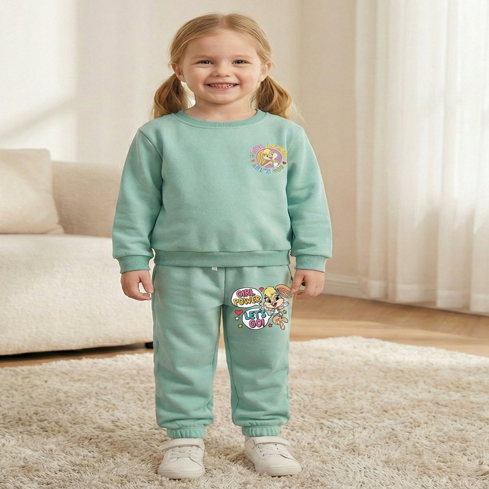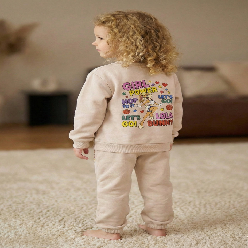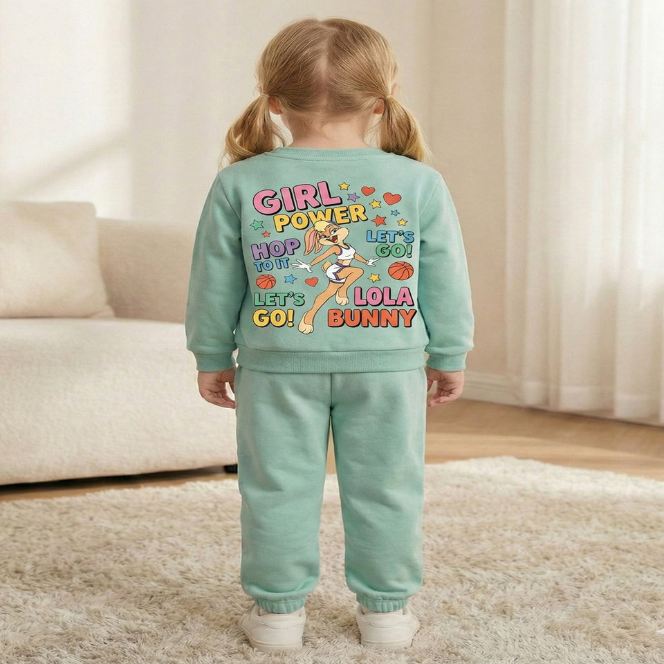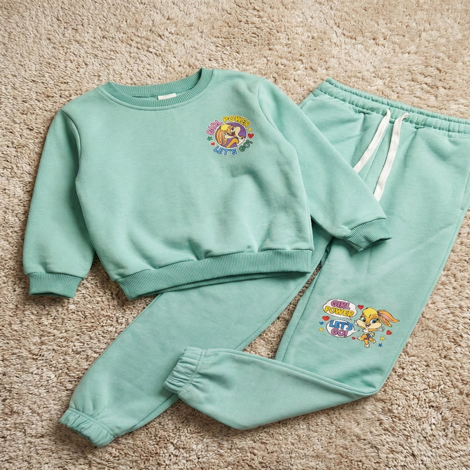 Enerjik Tavşan Figürlü Cepli Baharlık Alt Üst Kız Takım
