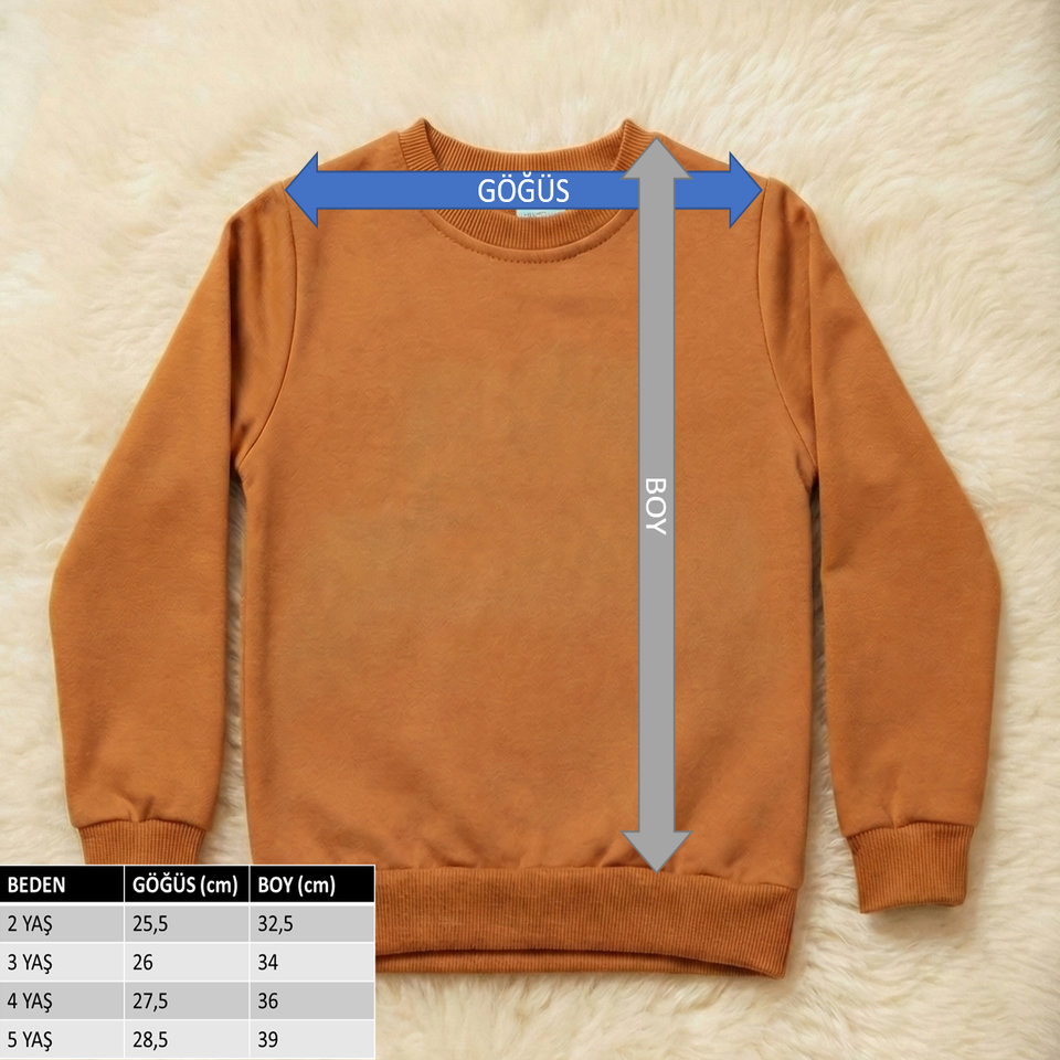 Beden bilgileri fotoğraflarda yer almaktadır. Ürün tam kalıptır, çocuğunuzun yaşıtlarından kalıplı olduğunu düşünüyorsanız, bir beden büyük almanızı tavsiye ederiz.