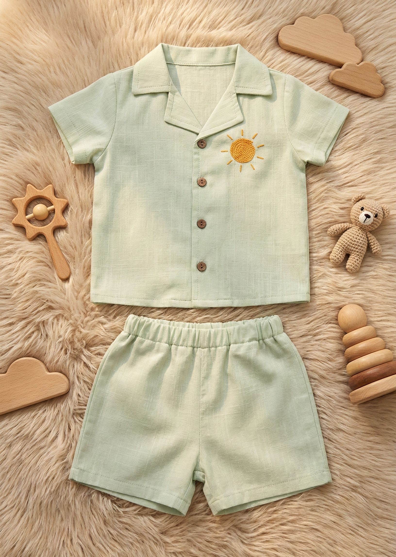 Doğallığı ve şıklığı bir arada arayan ebeveynler için tasarlanan bu özel keten takım, bebeğinizin hassas cildine nefes aldırırken, retro tarzıyla tüm bakışları üzerine çekecek. Yaz aylarının sıcak günlerinde serin tutan yapısı ve zamansız tasarımıyla hem günlük kullanımda hem de özel günlerde en favori kombininiz olmaya aday.