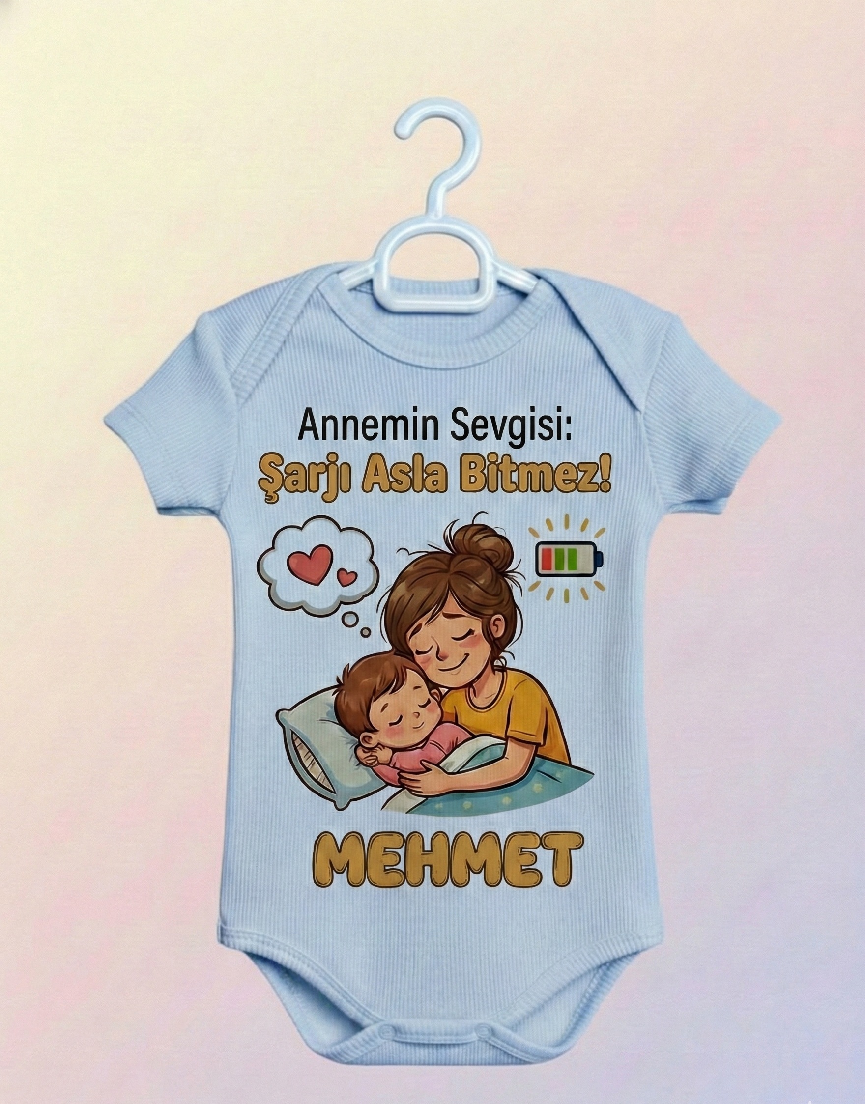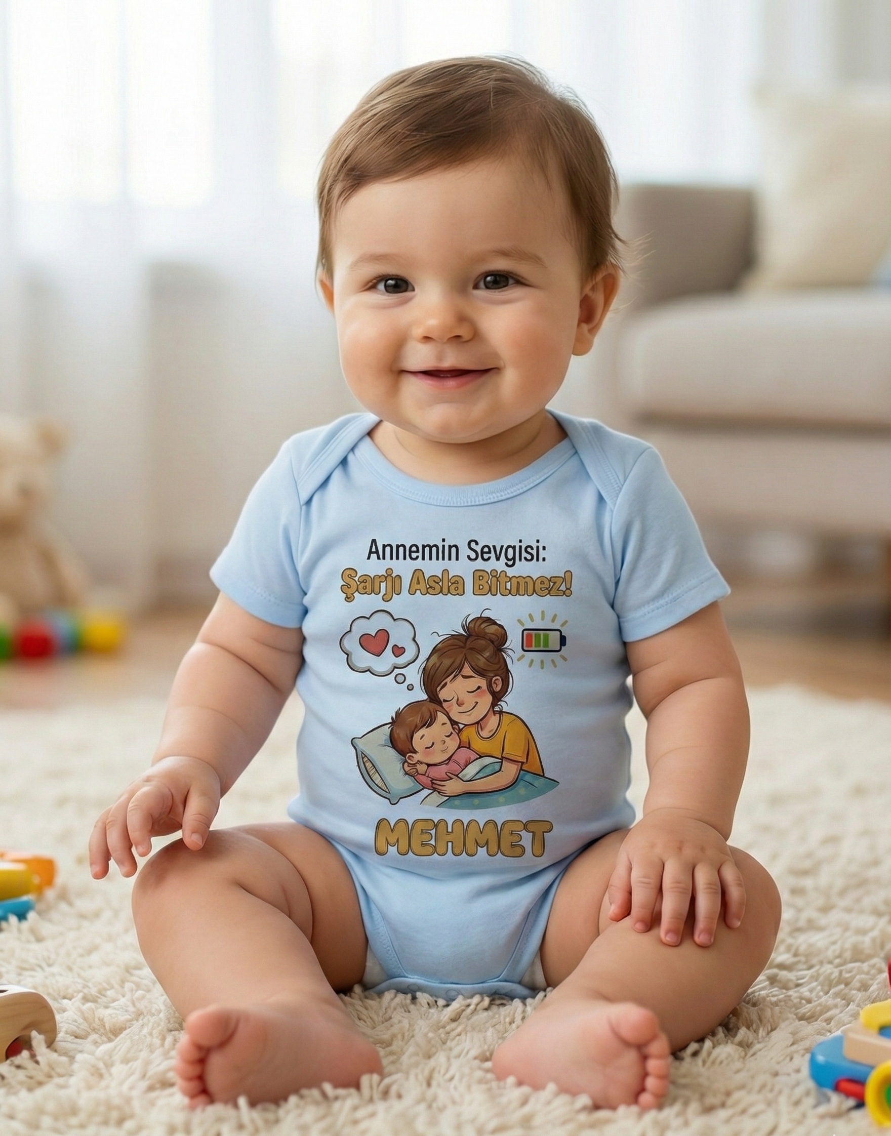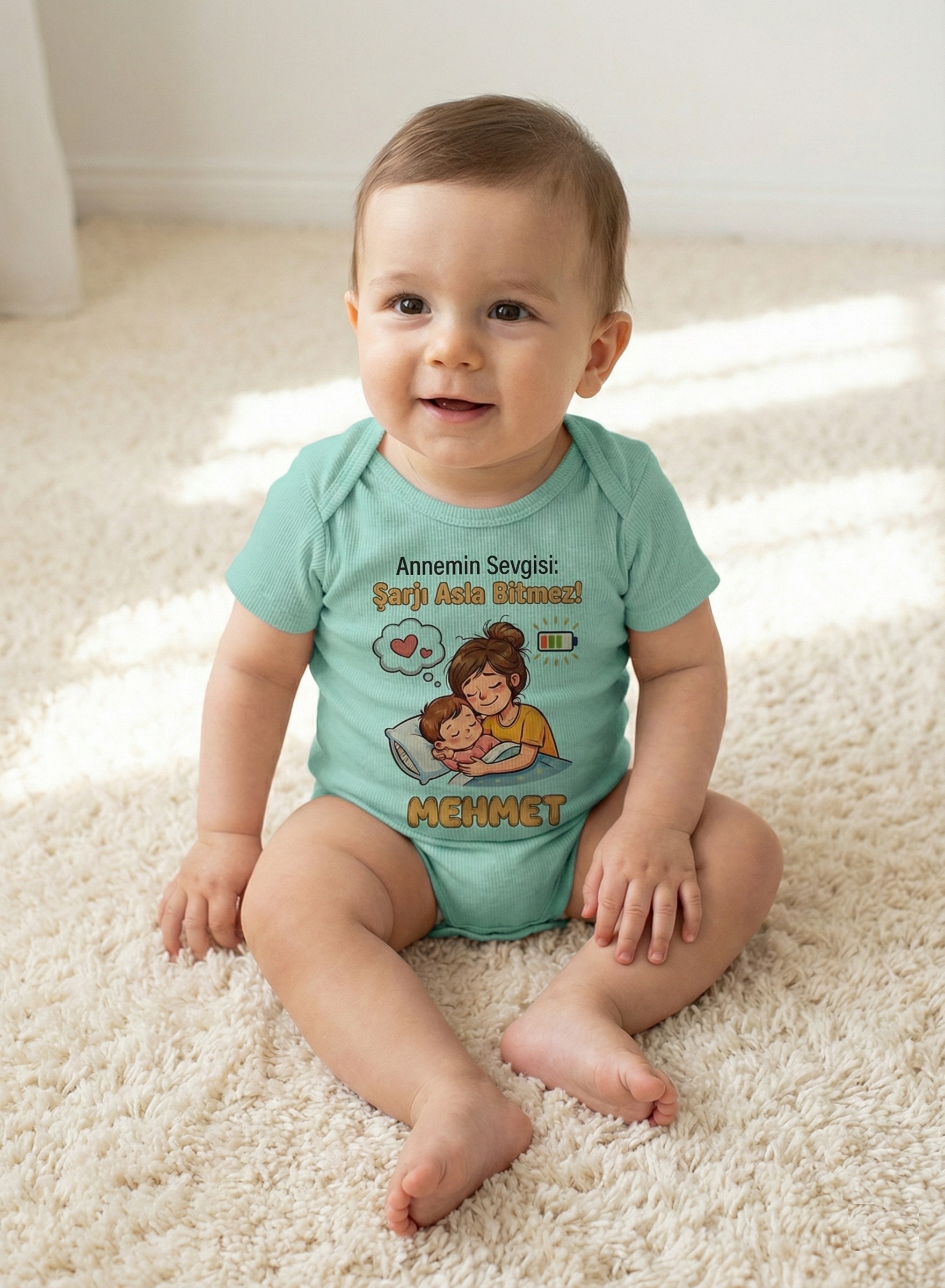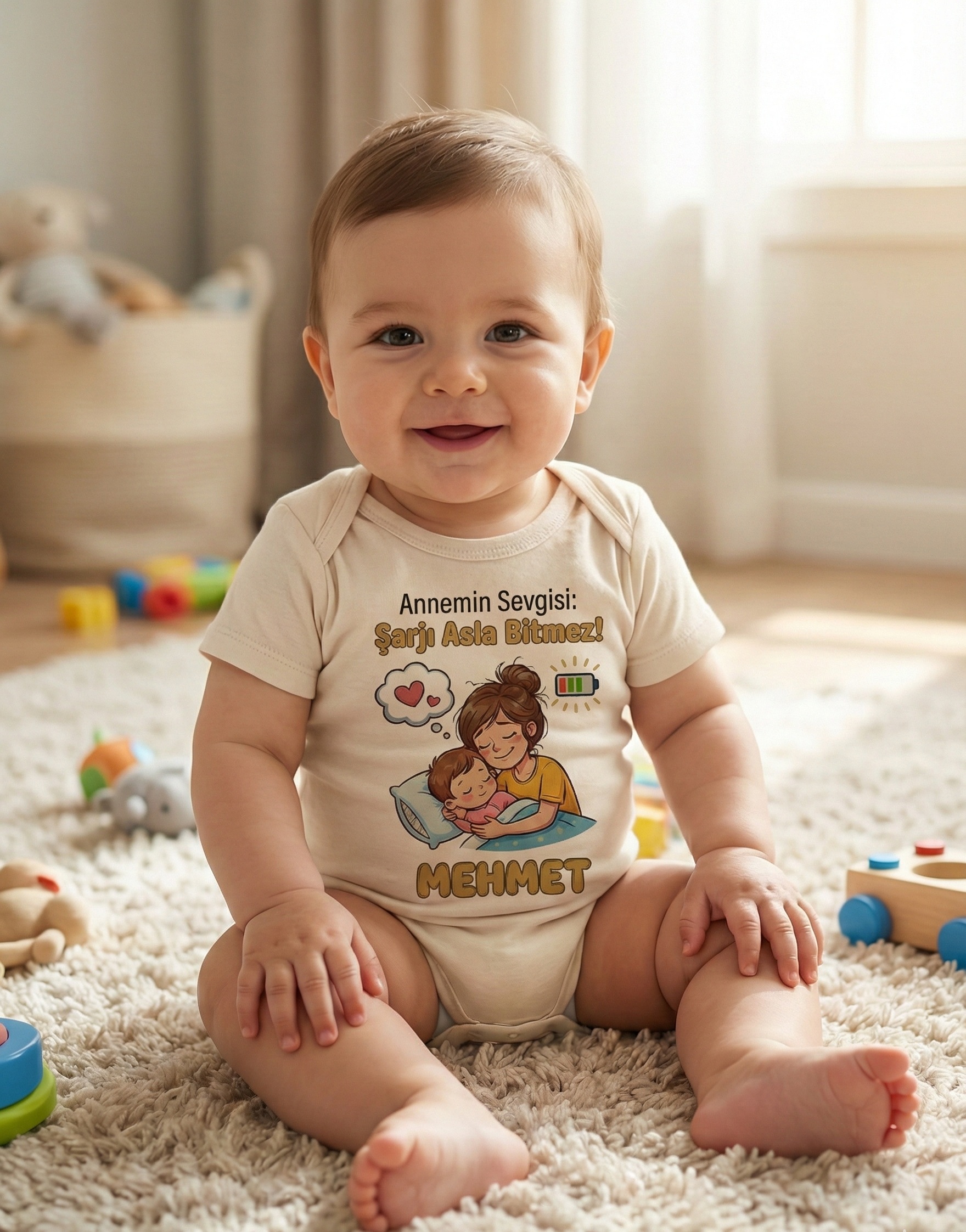 Annelerin bitmeyen enerjisini ve sevgisini temsil eden “Annemin Sevgisi: Şarjı Asla Bitmez!” baskısı ve bebeğinizin ismine özel tasarımıyla, hem günlük kullanımda hem de hatıra fotoğraflarında harika bir görüntü sunar.