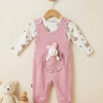 Kız Bebek Yüzde 100 Pamuk Tavşancık Oyuncaklı Salopet Tulum Seti – İç Çıtçıtlı Body (Lila)