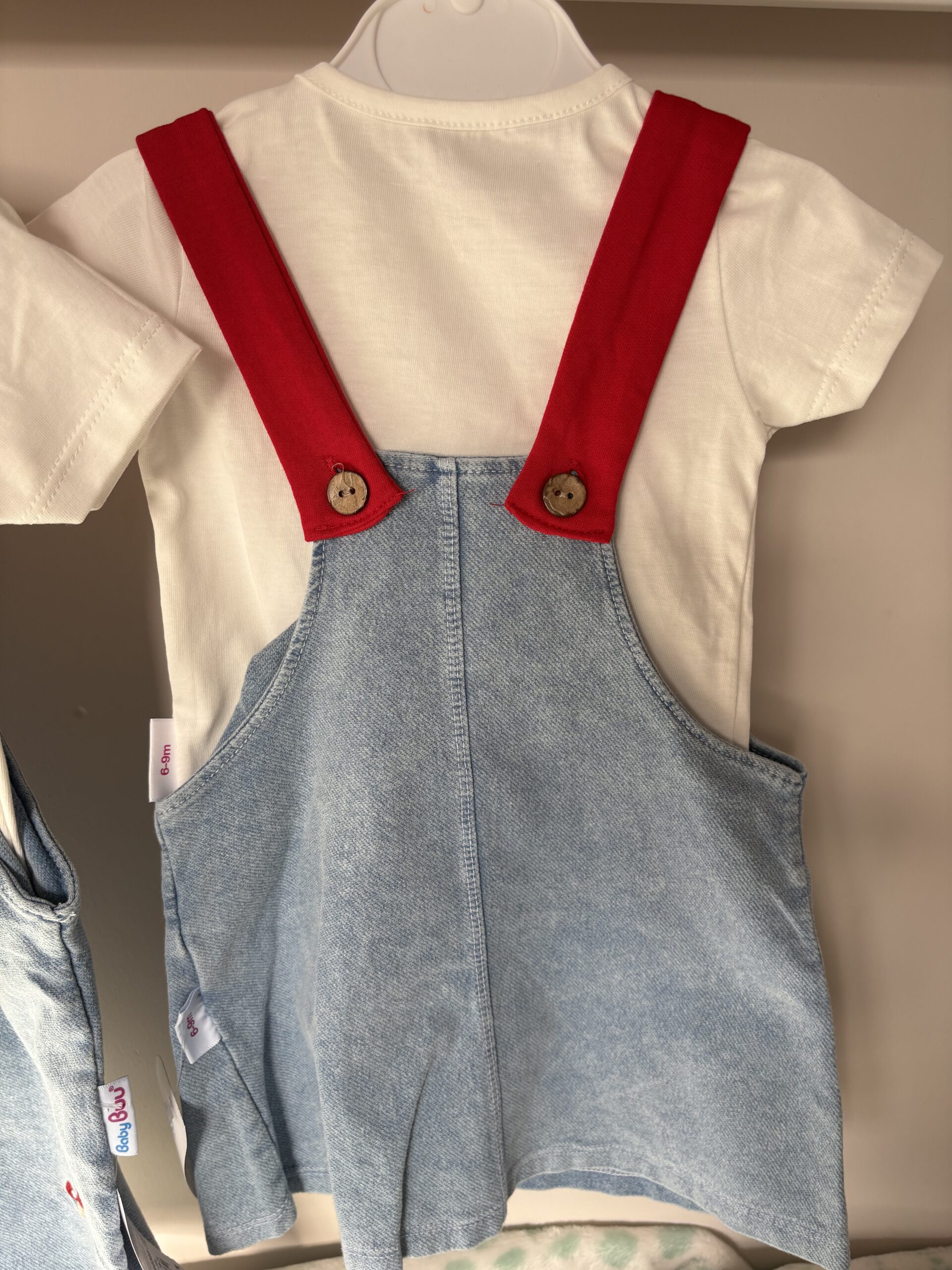 •  Yumuşak kot salopet ve nefes alan pamuklu t-shirt.